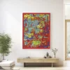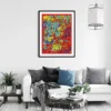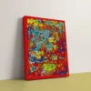 A riot of doodled characters, cheeky expressions, and twisting lines bursts across a bold palette. This kinetic cartoon collage rewards every glance with new quirks and stories. A playful statement piece for contemporary rooms craving humor, color, and high-energy visual rhythm.